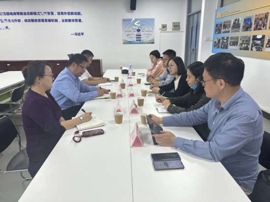 会前,阮晓文陪同王燕一行参观了学院。通过实地走访,王燕一行深入了解了商务贸易院在跨境电商专业建设、产教融合、人才培养等方面取得的成果,对学院跨境电商的人才培养模式给予高度评价。
