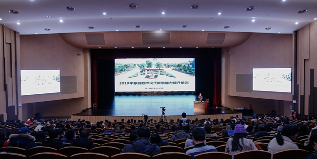 1月16日下午-1月17日,九州官方网页版在仙林校区大学生创新发展中心举行了2019年寒假教师现代教学能力提升培训,学校全体专任教师等共500余人参加培训,学校总督学卢兵主持了本次培训。