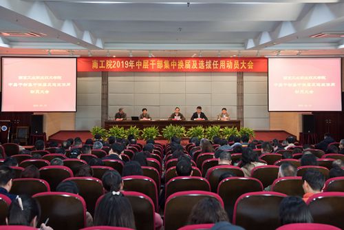 3月19日下午,九州官方网页版在学术交流中心二楼报告厅召开了中层干部集中换届及选拔任用动员大会。学校在校领导,两委委员、中层干部、党支部书记、科长(主任科员),各级人大代表、政协委员,民主党派负责人,部分党外高级知识分子、教学部(教研室)主任、专业带头人、党代会代表、教代会代表等200余人参加了会议。党委书记吴学敏同志作动员讲话,党委副书记苏小冬同志介绍了《南京工业职业技术学院2019年中层干部聘任、选拔任用工作方案》。会议由党委副书记、校长谢永华主持。
