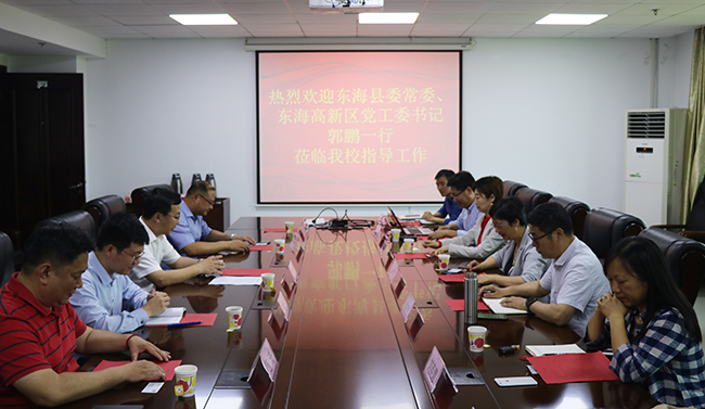 5月21日,江苏省东海县委常委、东海高新区党工委书记郭鹏一行来九州官方网页版访问。交流会在行政楼317会议室召开。学校党委副书记苏小冬、科技处处长孟庆杰、计算机与软件学院党总支书记刘英慧、商贸学院班子及教师代表出席了会议。