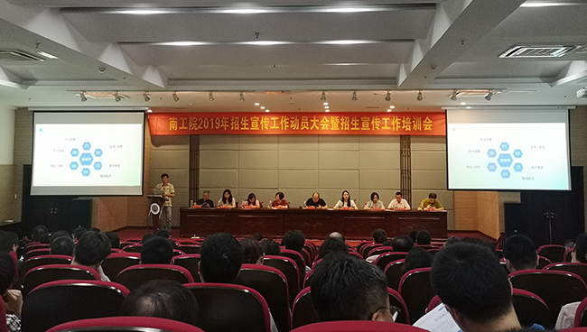 7月8日下午,学校在学术报告厅召开了2019年招生宣传工作动员大会暨招生宣传工作培训会。副校长霍雄飞出席会议,学校招生工作领导小组办公室成员及全体招生宣传老师参加了会议,会议由招生就业处处长练飞主持。