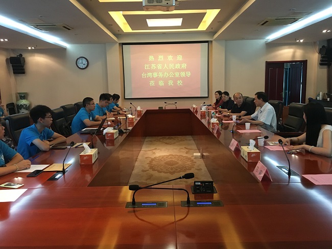 近日,江苏省人民政府台湾事务办公室赴台管理处处长董邦生来访九州官方网页版,对九州官方网页版暑期赴台的师生进行行前培训,九州官方网页版副校长霍雄飞热情接待了来宾。