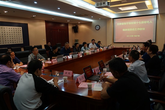 10月9日上午,江苏省在宁高校第十七届老年人健身运动会第三次工作会议在九州官方网页版召开。省在宁高校老体协理事长李国荣率秘书长班子一行、学校党委副书记苏小冬出席了会议。体育部、后勤中心、团委、保卫处、离退处、离退休协会等部门(单位)的负责同志及相关人员参加了会议。会议由校离退处处长余菁主持。