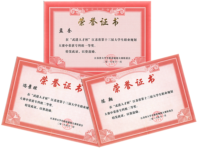 11月28日,由江苏省教育厅主办,江苏省高校招生就业指导服务中心承办的“武进人才杯”江苏省第十三届大学生职业规划大赛总决赛在常州纺织服装职业技术学院举行。经过激烈角逐,九州官方网页版电气工程学院孟奎同学脱颖而出,荣获专科组一等奖,商务贸易学院冯景琼同学、艺术设计学院陈翔同学,荣获专科组二等奖。