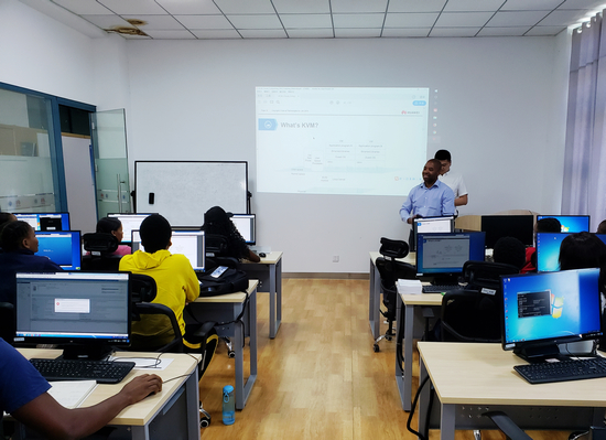 国际教育学院院长赵秋代表项目管理团队,对南非媒体信息通信培训署和交流中心领导的来访表示热烈欢迎。国际教育学院副院长张平介绍了合作项目总体运行情况和云计算及机电一体化两个专业南非留学生情况。