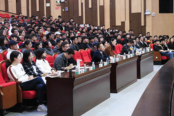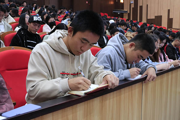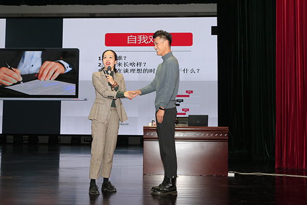 楚楚老师从“自我认知”、“大学认知”、“能力认知”、“目标规划”四个方面展开,通过分享亲身经历与生动案例强调大学生应当充分利用业余时间,学会学习与反思,培养坚持不懈精神,注重细节等。在讲课中,楚楚老师金句连连,风趣幽默,与现场同学展开积极互动,使课堂气氛活跃起来。同时启发各位同学要努力发挥自己的优势,提高自身综合素质,不忘初心、牢记使命。