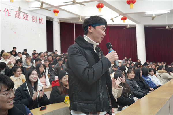 首先进行分享的是艺术设计学院2018届学生会主席朱晨杨同学,他用幽默风趣的语言为大家讲述了他在大学期间的奋斗史,他衷心期望同学们能汲取榜样的力量,立志做一个努力奋斗、持之以恒、创造故事、实现梦想的人,同时希望大家通过本次活动进一步明确人生方向,努力实现人生价值。接下来是2018届团总支副书记陈翔同学,他自入校起参加了各类国家级和省级创新创业大赛,取得了优异的成绩,他鼓励大家要有不变的热情和持之以恒的精神,要明确大学规划,积极参加各种比赛和实践活动的同时,学业成绩不能落后,努力提高自身的综合素质,争取做到全面发展。李雯珺同学告诉大家,不要被“拖延症”耽误了宝贵的时间,要学会合理安排自己的学习与工作,“若选择了远方,就不畏风雨前行”;金苏娟同学跟大家分享了自己做团支书和团总支宣传部部长时的工作经验,管理团队时要学会沟通、以人为本、尝试创新。顾君同学和大家分享了自己的成长经历和学习经历。