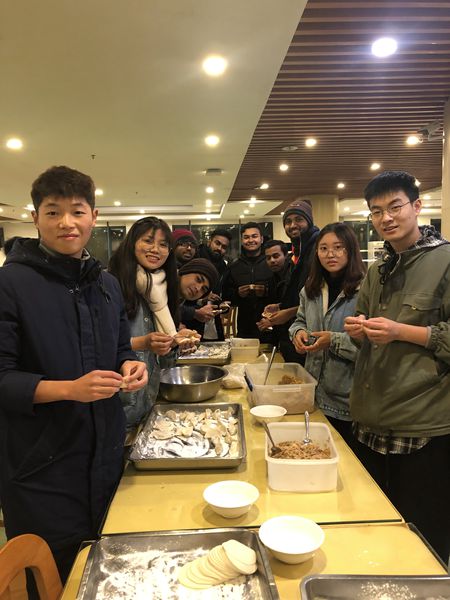 活动现场热闹非凡,中外学生的学习热情都很高,全场充满了欢声笑语。在老师和食堂工作人员悉心的指导下,中外学生都勇敢地尝试,包起了各种形状的饺子,忙得不亦乐乎。外国留学生们第一次包饺子,表现出浓厚的兴趣,很快便开始创新“别具一格”的饺子。通过不断的尝试,一个个外形新颖、妙趣横生的饺子呈现在大家面前,喜悦之情溢于言表。看着一盘盘包好的饺子下锅,中外学生都非常有成就感。饺子煮熟了之后,大家争先恐后地品尝起来,并且纷纷寻找哪些是自己包的,非常开心。中外留学生围坐在一起,边吃边聊,气氛很热烈,大家争相拍照,记录下难忘的时刻和自己的作品。来自俄罗斯的缇娜同学说:“我非常喜欢吃饺子,以后回国后,我也要做给朋友和家人吃。”
