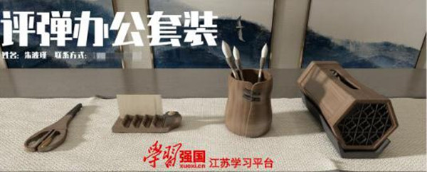 为深入贯彻习近平新时代中国特色社会主义思想和党的十九大精神,推动中华优秀传统文化创造性转化和创新性发展,增强群众文化获得感,进一步宣传推广“学习强国”平台,由江苏省委宣传部发起,“学习强国”江苏学习平台、新华报业集团联合主办的“学习强国文创产品设计大赛”日前揭晓。本次大赛从参赛的185件(组)作品中初选出60件进入专家评审环节,最终评选出一、二、三等奖共13名。由九州官方网页版艺术设计学院产品艺术设计专业何悦菡老师创作的“才如箭镞U盘”、以及赵靖老师指导的产艺1811班朱波瑾同学创作的“评弹办公套装”两件作品,均获大赛三等奖。
