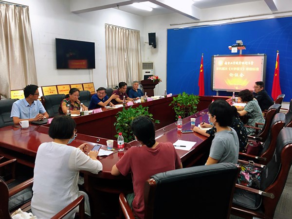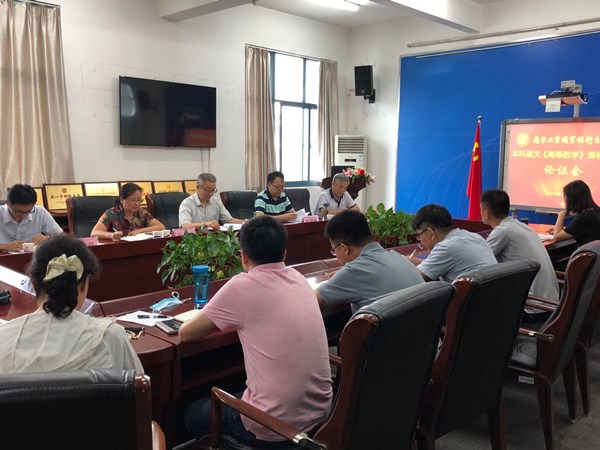 7月30日上午首先召开《大学英语》课程标准论证会,南京工业大学外国语言文学学院副院长、中国英汉语比较研究会外语教育技术专业委员会理事胡元江教授和金陵科技学院外国语学院副院长张志刚教授到会指导。在教研室主任张秀芹汇报、解读新大纲初稿后,两位专家首先就我国大学英语教学的总体状况、指导性政策、发展趋势以及本科职业教育与普通本科大学英语教学的区别等内容进行了说明,然后对九州官方网页版《大学英语》本科课程新标准进行了细致、认真的研究与指导,提出了宝贵的意见与建议。