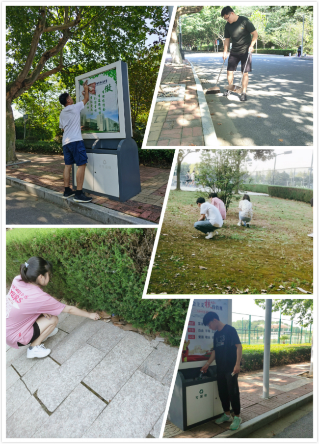 志愿者秉承共建美好校园环境的理念,积极开展清洁校园志愿服务活动,有的提着水桶,拿着刷子抹布以及小铲子,在校园内寻找沾满胶水的小广告;有的拿着扫帚,看见地上的瓜皮纸屑,就冲上去打扫干净;有的拿着夹子,仔细清理花园内的废纸废瓶子,分类放进垃圾桶。经过半天辛勤劳动,校园环境变得整齐有序,同学们也在劳动中进一步传承和发扬了无私奉献、乐于助人、艰苦奋斗的中国精神,以实际行动美化校园环境。