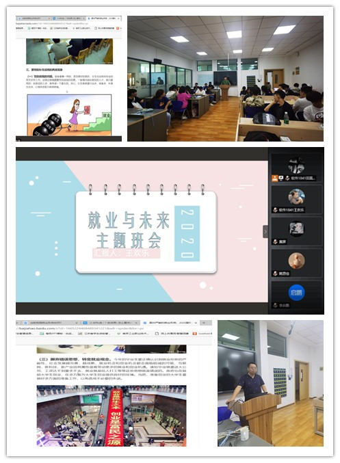 各班级利用线上线下多种形式开展班会,班主任老师积极将“先就业,再择业”、“服务基层,迅速成长”、“参军入伍,报效祖国”等就业观念传达给学生,叮嘱毕业生树立正确的就业观念,做好就业择业的准备,积极主动地投身社会,争取在实践中不断成长。同时通过主题班会,各班级就当前的就业形势给同学们进行分析,鼓励毕业生们抓住当前计算机与软件相关行业发展的大机遇,在企业实践中增长才干、建功立业。活动中各班级将“就业服务季”相关活动做了介绍,鼓励同学们积极参与“江苏省就业知识竞赛”、“制作简历”、“就业信息网线上咨询”等活动。督促同学们根据自身求职意向高效率地参加学校、学院组织的各类招聘会、宣讲会,为后面的求职提前做好充足的准备。