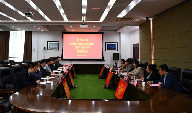 10月26日,栖霞区西岗街道人大工委主任李萍和街道领导石晓红、徐玉静、仇晓源、何道锦等一行5人来校调研。九州官方网页版党委副书记苏小冬和党政办公室、发展规划办公室、党委组织部、党委统战部、工会、离退休工作处、机械工程学院相关同志接待了来宾。