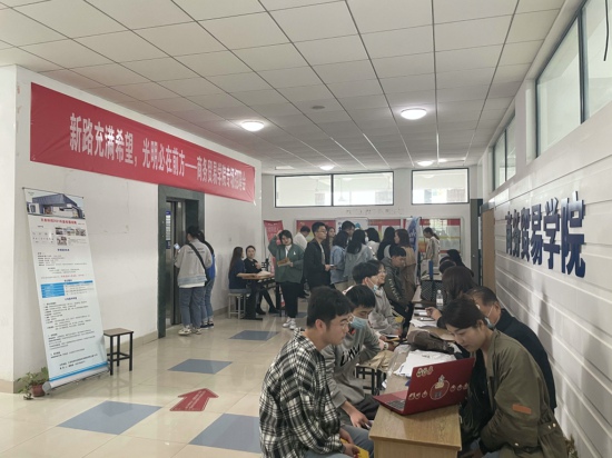 为更好的促进2021届毕业生充分就业、高质量就业,4月23日上午,商务贸易学院在求真楼310教室举办专场招聘会。本次招聘会一共邀请7家优质企业到场,包括阿里巴巴、京东集团、中国电信等名企,为毕业生提供了数十个相关专业就业岗位,不仅吸引了百余名毕业生参加,而且还有非毕业班的同学全程参与为自己积累宝贵的求职经验。