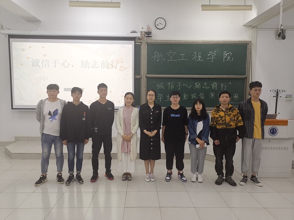 为深入贯彻落实习近平总书记关于教育的重要论述,增强当代大学生的诚信意识和责任意识,大力宣传国家资助政策,充分发挥资助育的人功能,增强大学生心怀感恩、诚信做人、勇担责任的优秀品质,5月12日下午,航空工程学院在乐群楼J202举行主题为“诚以立身,信以立德”的演讲比赛。航空工程学院辅导员孙瑛、纪孟含、院心理部部长冯涛担任此次比赛评委,2019级、2020级学生代表共七十余人参加了本次比赛。